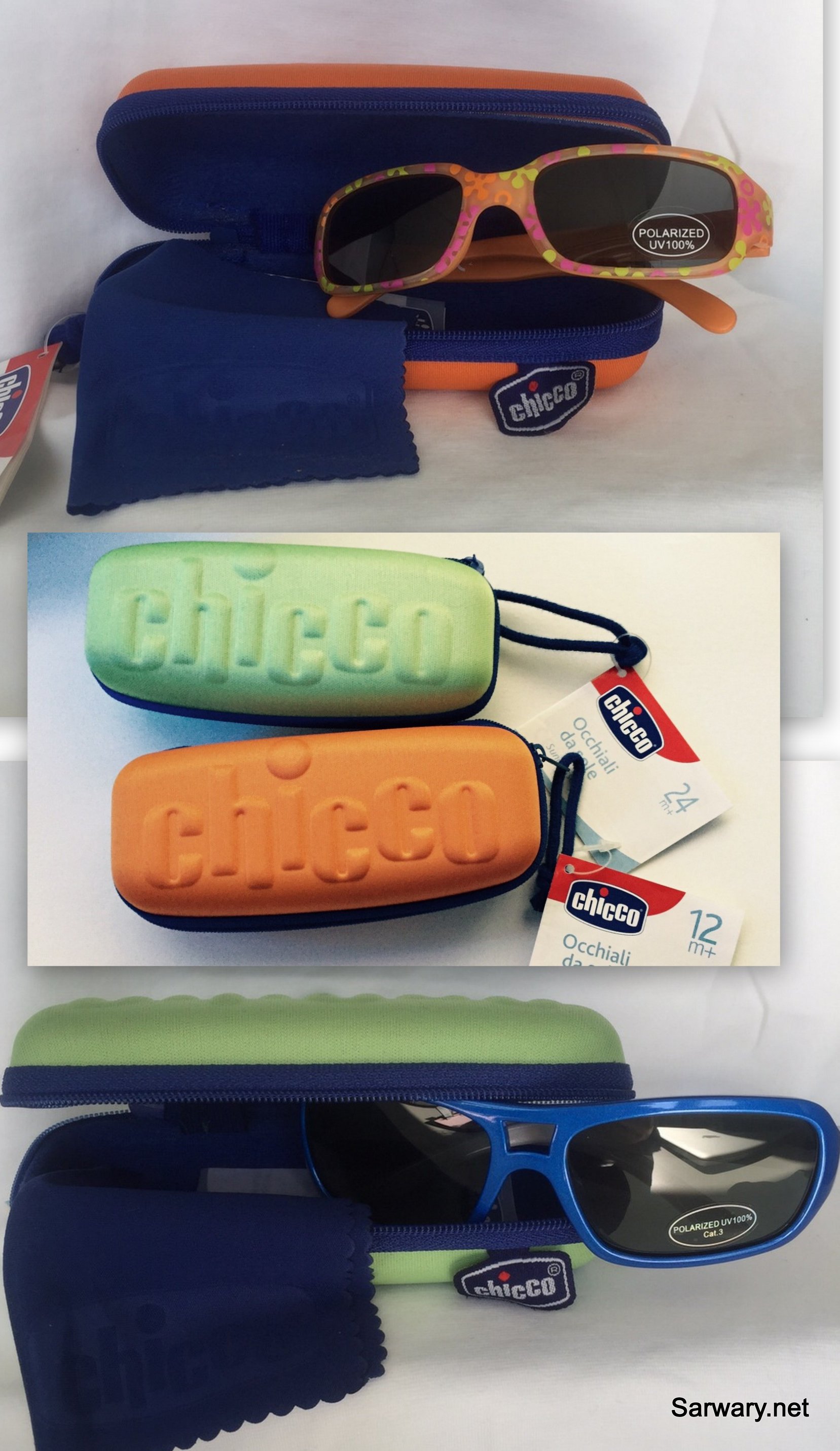 Modische Sonnenbrillen für Kinder in verschiedenen Farben in einem stylischem Zip-Case von Chicco.