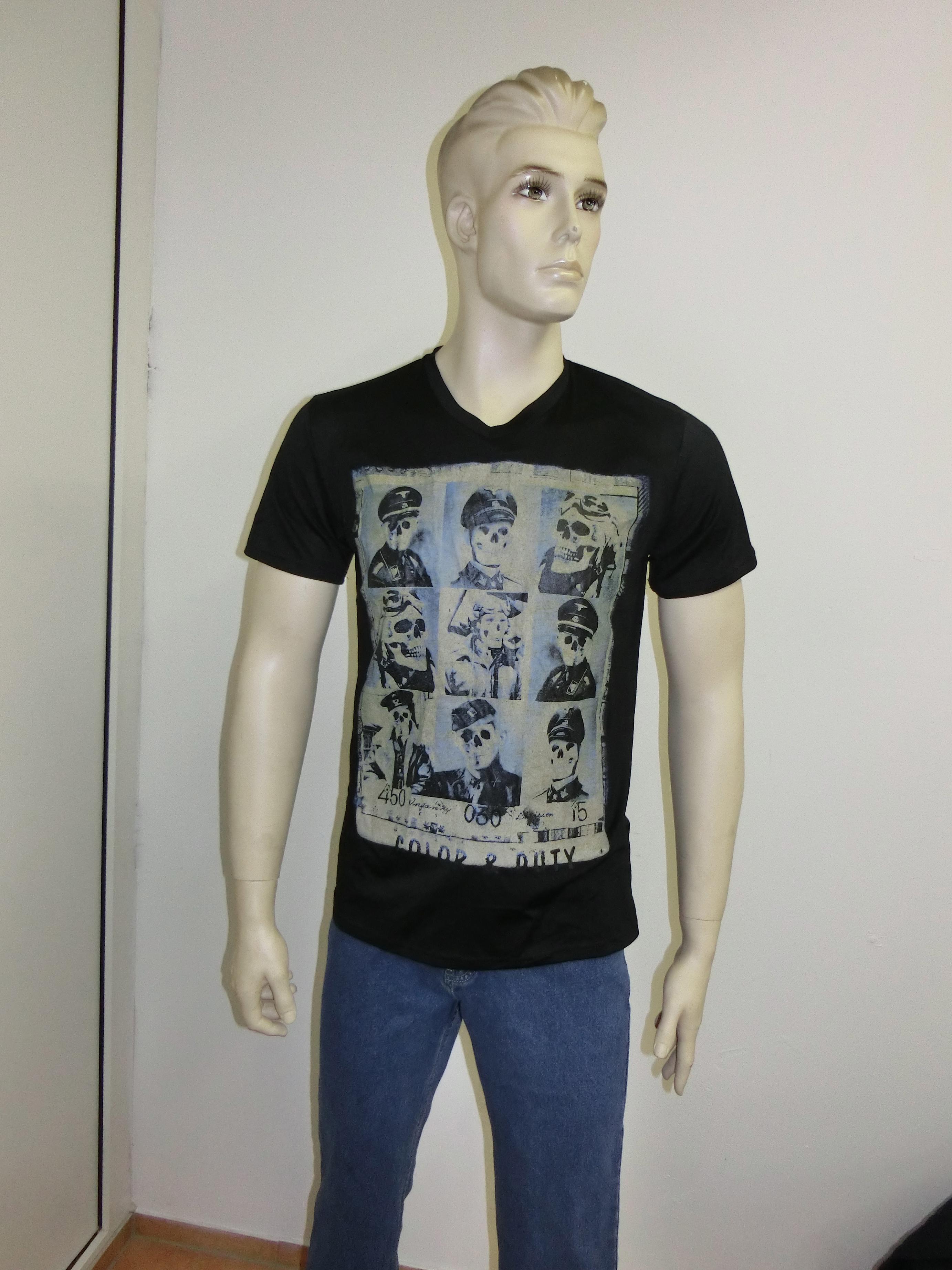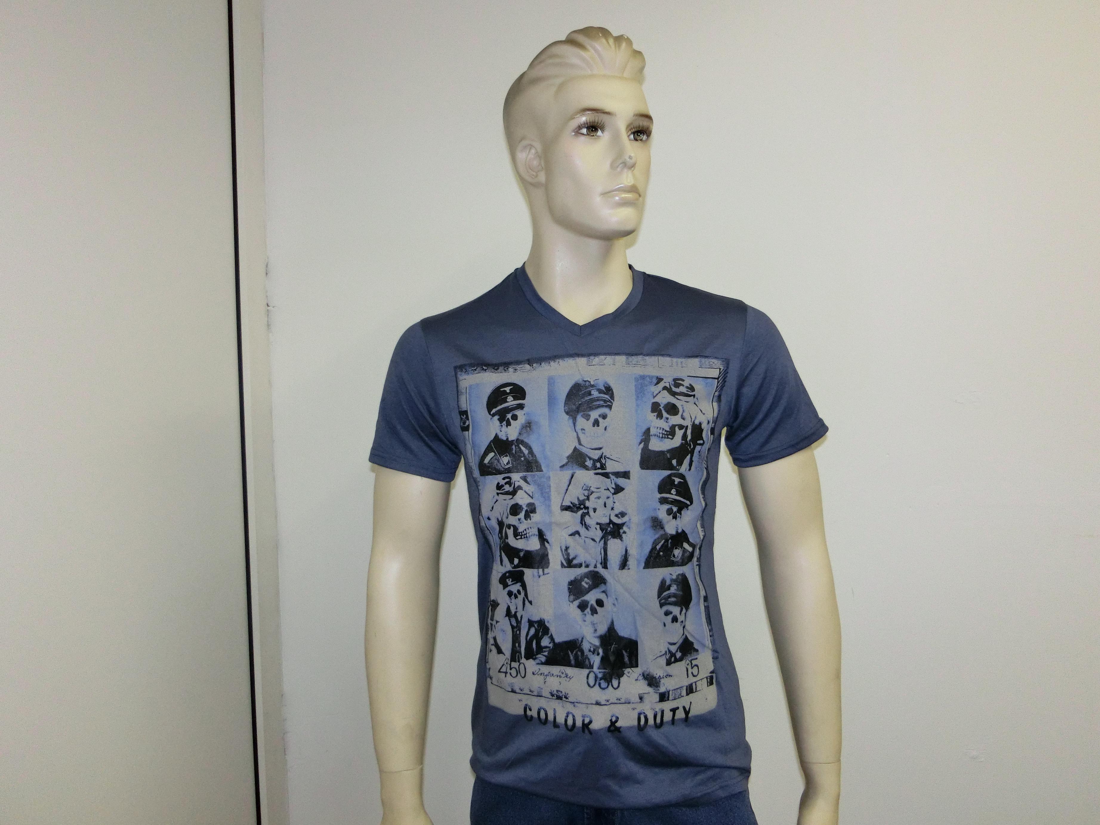 Printshirt mit aktuellen Motiven für Männer in schwarz und blau. Menge: 2000 Stück, Größen: S-M-L-XL, Preis auf Anfrage
